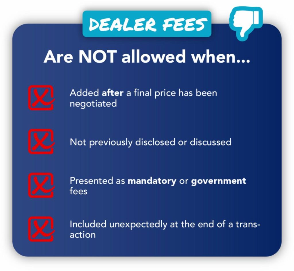 These are just some of the common questions from consumers about dealer fees โ charges added by the dealership that are not required by law, such as taxes. Examples of dealer fees are often referred to as documentation fees, administration fees, and placement fees.